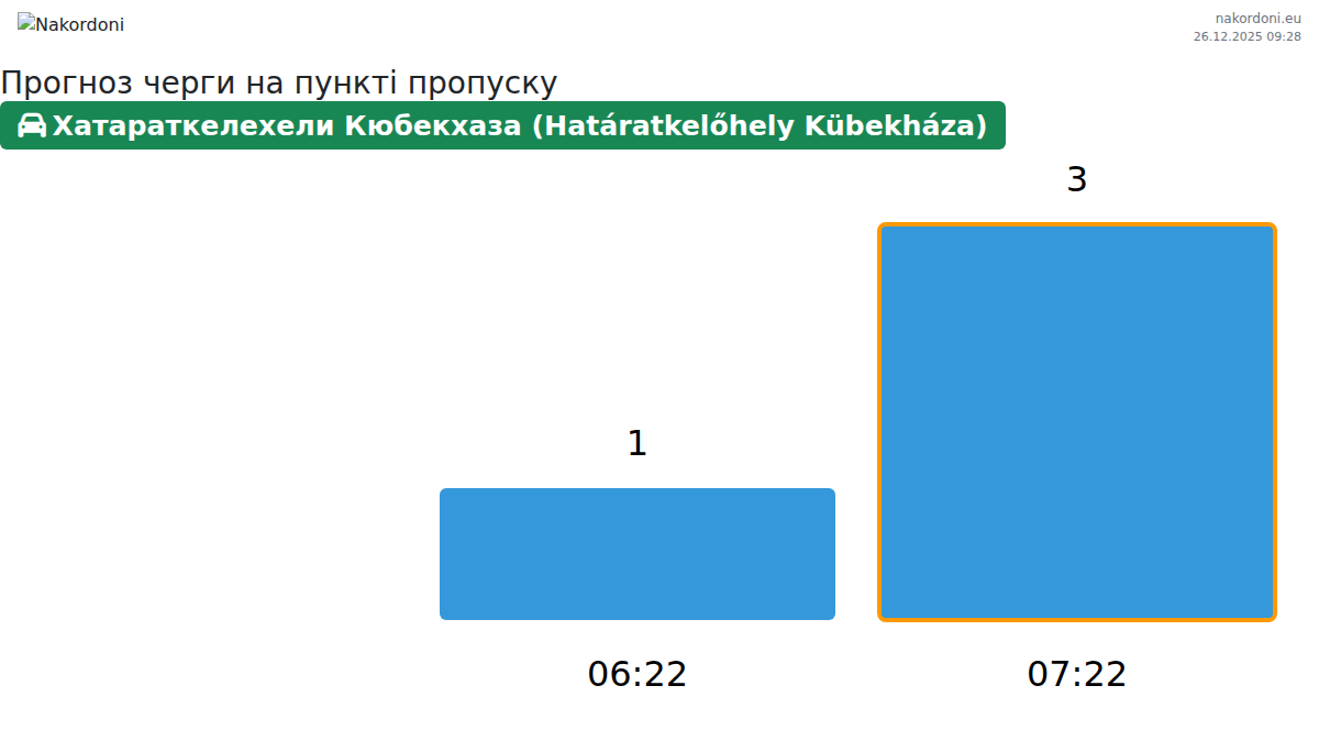 Для уникнення довгих черг на кордоні на пункті пропуску Хатараткелехели Кюбекхаза (Határatkelőhely Kübekháza) - легковий автомобіль, рекомендуємо планувати перетин кордону в години найменшого навантаження. Згідно з даними за минулу добу, найменша кількість автомобілів спостерігалася між 1:00 та 4:00 годинами. Це ідеальний час для перетину кордону, щоб зекономити час і уникнути затримок.