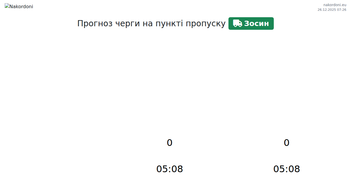 За період 25.12.2025 з 00:00 по 23:59 на кордоні на пункті пропуску Зосин - вантажний транспорт були зафіксовані наступні ключові моменти: