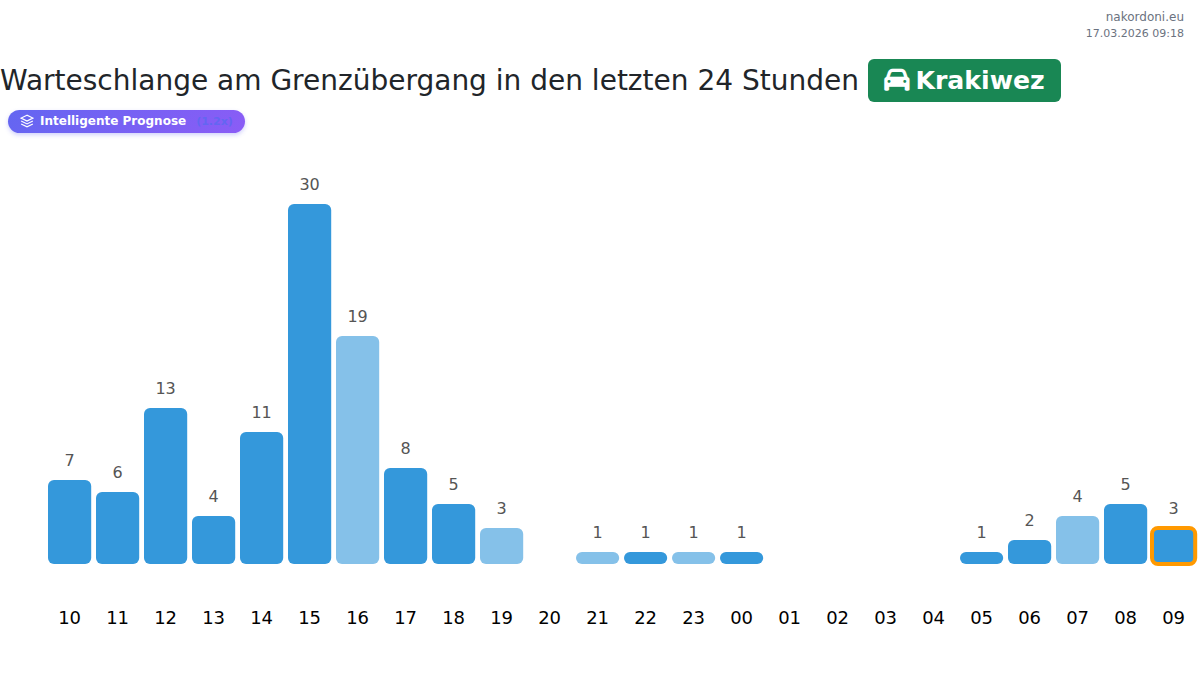 Planen Sie Ihre Reisen im Voraus und nutzen Sie aktuelle Informationen über die Warteschlangen an der Grenze am Grenzübergang Krakivets - Personenkraftwagen, um Ihren Grenzübertritt schnell und bequem zu gestalten. Achten Sie besonders auf diese Stunden, um Stoßzeiten zu vermeiden und die Wartezeiten zu verkürzen.
