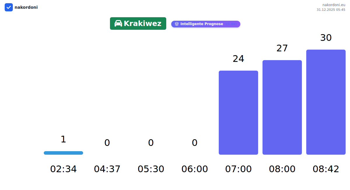 Planen Sie Ihre Reisen im Voraus und nutzen Sie aktuelle Informationen über die Warteschlangen an der Grenze am Grenzübergang Krakiwez - Personenkraftwagen, um Ihren Grenzübertritt schnell und bequem zu gestalten. Achten Sie besonders auf diese Stunden, um Stoßzeiten zu vermeiden und die Wartezeiten zu verkürzen.