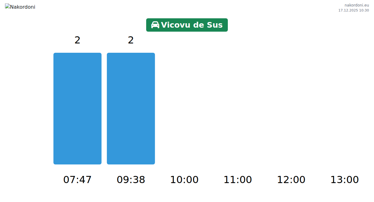Planen Sie Ihre Reisen im Voraus und nutzen Sie aktuelle Informationen über die Warteschlangen an der Grenze am Grenzübergang Vicovu de Sus - Personenkraftwagen, um Ihren Grenzübertritt schnell und bequem zu gestalten. Achten Sie besonders auf diese Stunden, um Stoßzeiten zu vermeiden und die Wartezeiten zu verkürzen.