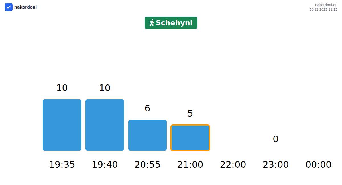 Planen Sie Ihre Reisen im Voraus und nutzen Sie aktuelle Informationen über die Warteschlangen an der Grenze am Grenzübergang Schehyni - Fußgänger, um Ihren Grenzübertritt schnell und bequem zu gestalten. Achten Sie besonders auf diese Stunden, um Stoßzeiten zu vermeiden und die Wartezeiten zu verkürzen.
