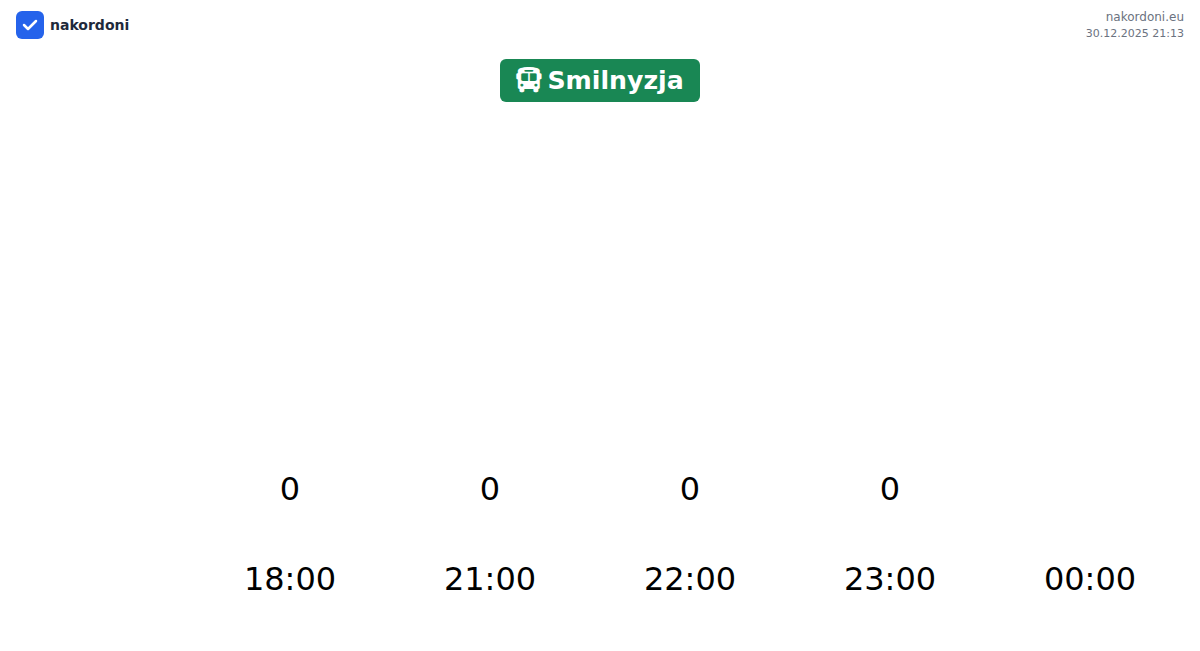 Um lange Warteschlangen an der Grenze am Grenzübergang Smilnyzja - Bus zu vermeiden, wird empfohlen, den Grenzübertritt während der Zeiten mit der geringsten Auslastung zu planen. Laut den Daten des letzten Tages wurde die geringste Anzahl von Fahrzeugen zwischen 5:00 und 18:00 Uhr beobachtet. Dies ist die ideale Zeit für den Grenzübertritt, um Zeit zu sparen und Verzögerungen zu vermeiden.