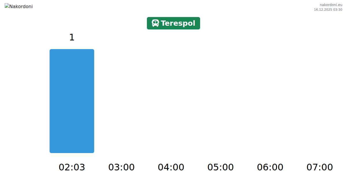 Um lange Warteschlangen an der Grenze am Grenzübergang Terespol - Bus zu vermeiden, wird empfohlen, den Grenzübertritt während der Zeiten mit der geringsten Auslastung zu planen. Laut den Daten des letzten Tages wurde die geringste Anzahl von Fahrzeugen zwischen 11:00 und 16:00 Uhr beobachtet. Dies ist die ideale Zeit für den Grenzübertritt, um Zeit zu sparen und Verzögerungen zu vermeiden.