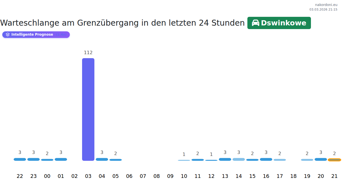 Planen Sie Ihre Reisen im Voraus und nutzen Sie aktuelle Informationen über die Warteschlangen an der Grenze am Grenzübergang Dzvinkove - Personenkraftwagen, um Ihren Grenzübertritt schnell und bequem zu gestalten. Achten Sie besonders auf diese Stunden, um Stoßzeiten zu vermeiden und die Wartezeiten zu verkürzen.