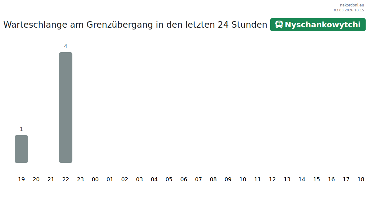 Planen Sie Ihre Reisen im Voraus und nutzen Sie aktuelle Informationen über die Warteschlangen an der Grenze am Grenzübergang Nyzhankovychi - Bus, um Ihren Grenzübertritt schnell und bequem zu gestalten. Achten Sie besonders auf diese Stunden, um Stoßzeiten zu vermeiden und die Wartezeiten zu verkürzen.