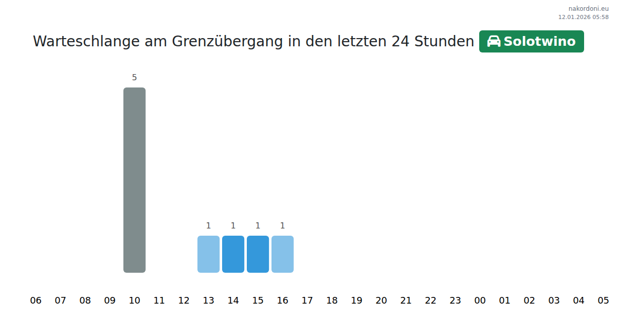 Planen Sie Ihre Reisen im Voraus und nutzen Sie aktuelle Informationen über die Warteschlangen an der Grenze am Grenzübergang Solotwino - Personenkraftwagen, um Ihren Grenzübertritt schnell und bequem zu gestalten. Achten Sie besonders auf diese Stunden, um Stoßzeiten zu vermeiden und die Wartezeiten zu verkürzen.