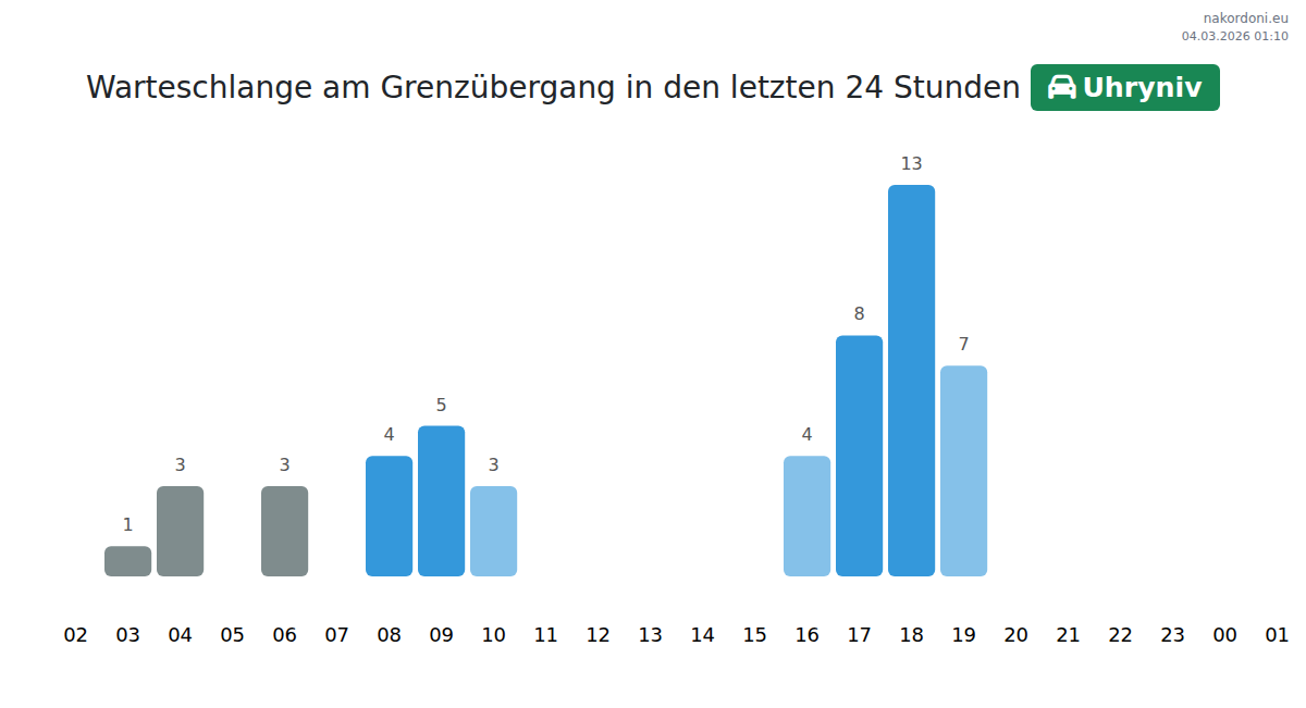 Planen Sie Ihre Reisen im Voraus und nutzen Sie aktuelle Informationen über die Warteschlangen an der Grenze am Grenzübergang Uhryniv - Personenkraftwagen, um Ihren Grenzübertritt schnell und bequem zu gestalten. Achten Sie besonders auf diese Stunden, um Stoßzeiten zu vermeiden und die Wartezeiten zu verkürzen.