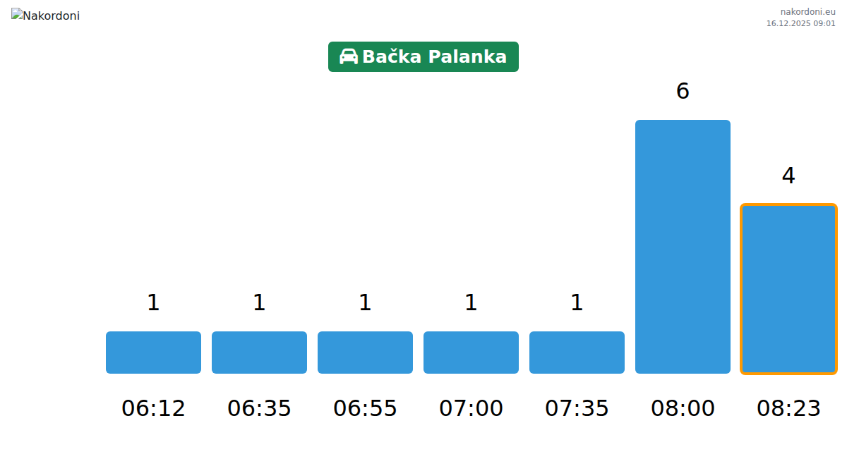 Planen Sie Ihre Reisen im Voraus und nutzen Sie aktuelle Informationen über die Warteschlangen an der Grenze am Grenzübergang Batschka Palanka - Personenkraftwagen, um Ihren Grenzübertritt schnell und bequem zu gestalten. Achten Sie besonders auf diese Stunden, um Stoßzeiten zu vermeiden und die Wartezeiten zu verkürzen.
