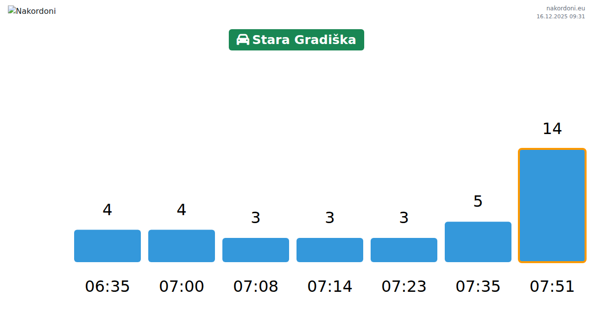 Planen Sie Ihre Reisen im Voraus und nutzen Sie aktuelle Informationen über die Warteschlangen an der Grenze am Grenzübergang Alt Gradischka - Personenkraftwagen, um Ihren Grenzübertritt schnell und bequem zu gestalten. Achten Sie besonders auf diese Stunden, um Stoßzeiten zu vermeiden und die Wartezeiten zu verkürzen.