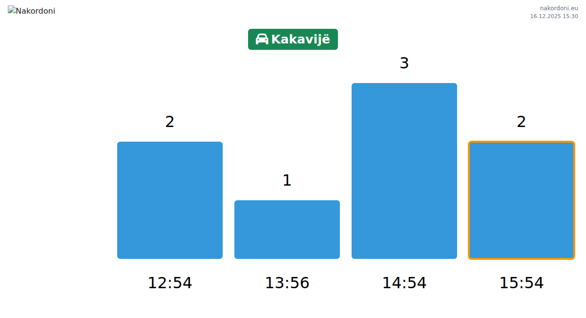 Planen Sie Ihre Reisen im Voraus und nutzen Sie aktuelle Informationen über die Warteschlangen an der Grenze am Grenzübergang Kakawije - Personenkraftwagen, um Ihren Grenzübertritt schnell und bequem zu gestalten. Achten Sie besonders auf diese Stunden, um Stoßzeiten zu vermeiden und die Wartezeiten zu verkürzen.