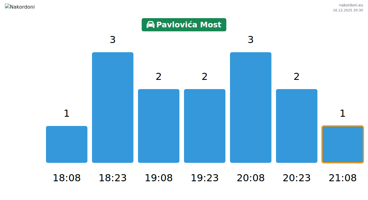 Um lange Warteschlangen an der Grenze am Grenzübergang Pavlovića Most - Personenkraftwagen zu vermeiden, wird empfohlen, den Grenzübertritt während der Zeiten mit der geringsten Auslastung zu planen. Laut den Daten des letzten Tages wurde die geringste Anzahl von Fahrzeugen zwischen :00 und 1:00 Uhr beobachtet. Dies ist die ideale Zeit für den Grenzübertritt, um Zeit zu sparen und Verzögerungen zu vermeiden.