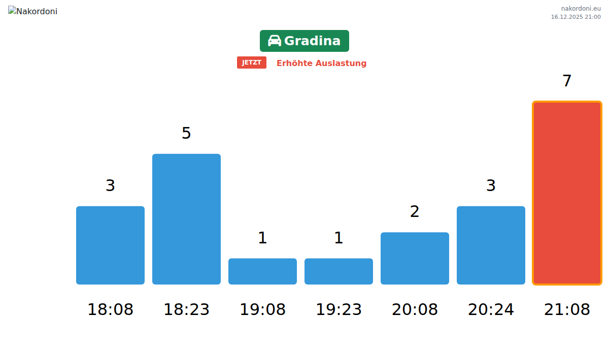 Planen Sie Ihre Reisen im Voraus und nutzen Sie aktuelle Informationen über die Warteschlangen an der Grenze am Grenzübergang Gradina - Personenkraftwagen, um Ihren Grenzübertritt schnell und bequem zu gestalten. Achten Sie besonders auf diese Stunden, um Stoßzeiten zu vermeiden und die Wartezeiten zu verkürzen.