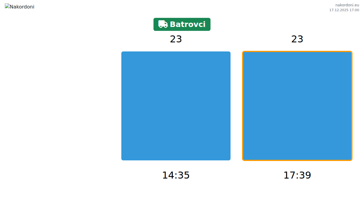 Analyse der Warteschlangen an der Grenze am Grenzübergang Batrovci - Lastkraftwagen (bis 7,5 Tonnen) für gestern