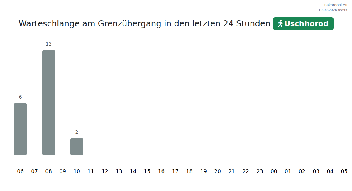Planen Sie Ihre Reisen im Voraus und nutzen Sie aktuelle Informationen über die Warteschlangen an der Grenze am Grenzübergang Uschhorod - Fußgänger, um Ihren Grenzübertritt schnell und bequem zu gestalten. Achten Sie besonders auf diese Stunden, um Stoßzeiten zu vermeiden und die Wartezeiten zu verkürzen.