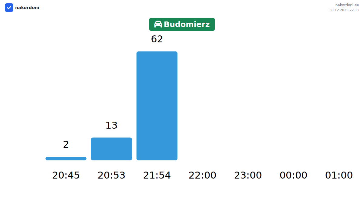 Analyse der Warteschlangen an der Grenze am Grenzübergang Budomierz - Personenkraftwagen für gestern