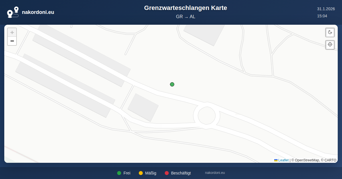 Interaktive Griechenland — Albanien Grenzkarte mit Echtzeit-Warteschlangen, Prognose und Übergangs-Status