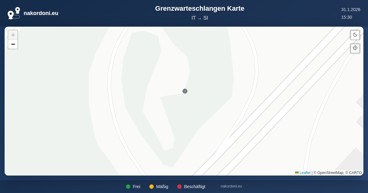 Interaktive Italien — Slowenien Grenzkarte mit Echtzeit-Warteschlangen, Prognose und Übergangs-Status