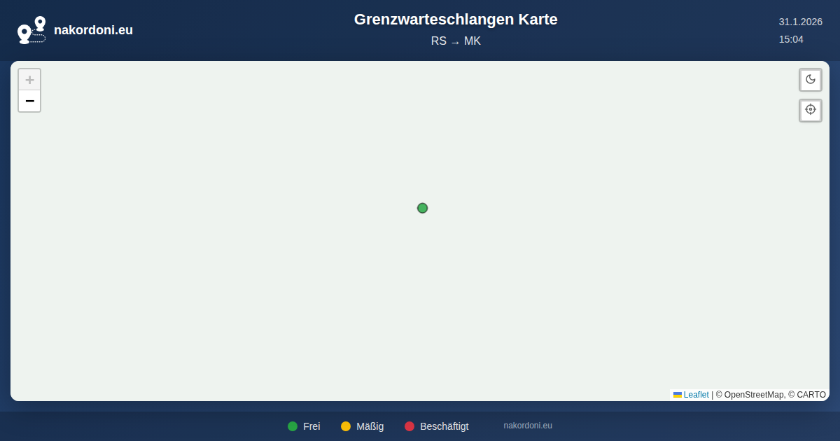 Interaktive Serbien — Nordmazedonien Grenzkarte mit Echtzeit-Warteschlangen, Prognose und Übergangs-Status
