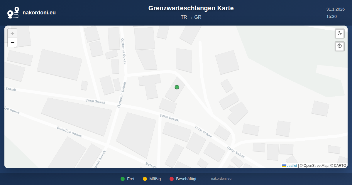 Interaktive Türkei — Griechenland Grenzkarte mit Echtzeit-Warteschlangen, Prognose und Übergangs-Status