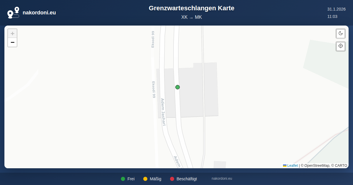 Interaktive Kosovo — Nordmazedonien Grenzkarte mit Echtzeit-Warteschlangen, Prognose und Übergangs-Status