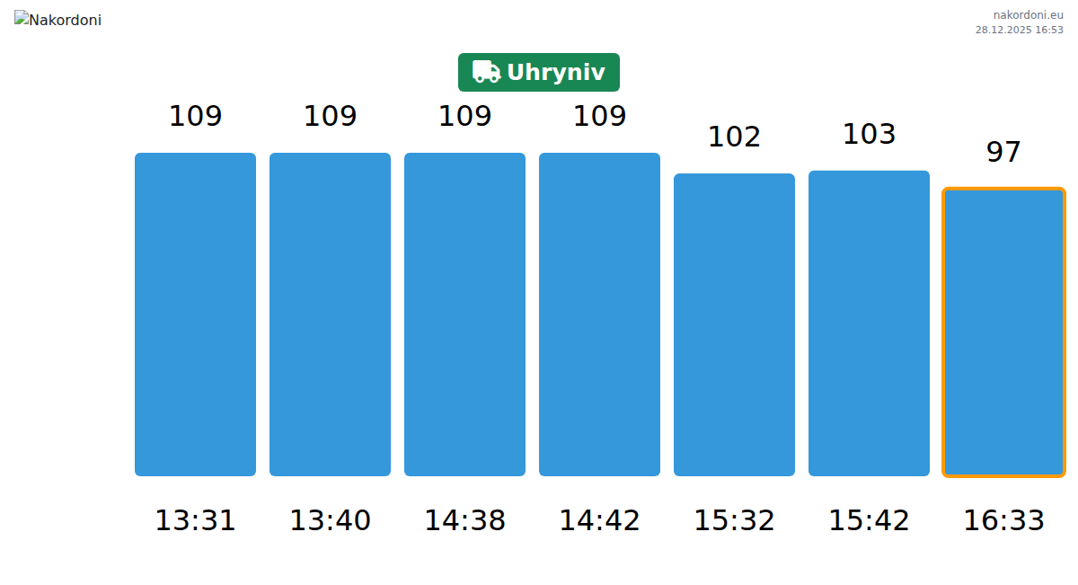 Plan your trips in advance using up-to-date border queue information at the Uhryniv - cargo transport checkpoint to make your crossing fast and convenient. Pay special attention to these hours to avoid peak times and reduce waiting times.