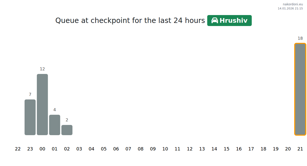 Border Queue Analysis at the Hrushiv - passenger car TaxFREE (Red line) checkpoint for Yesterday