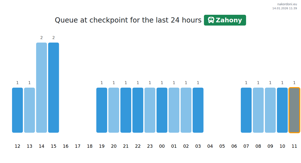 To avoid long queues at the Zahony - bus checkpoint, it is recommended to plan your border crossing during the least busy hours. According to the data from the past day, the lowest number of vehicles was observed between :00 and 1:00 hours. This is the ideal time to cross the border, saving time and avoiding delays.