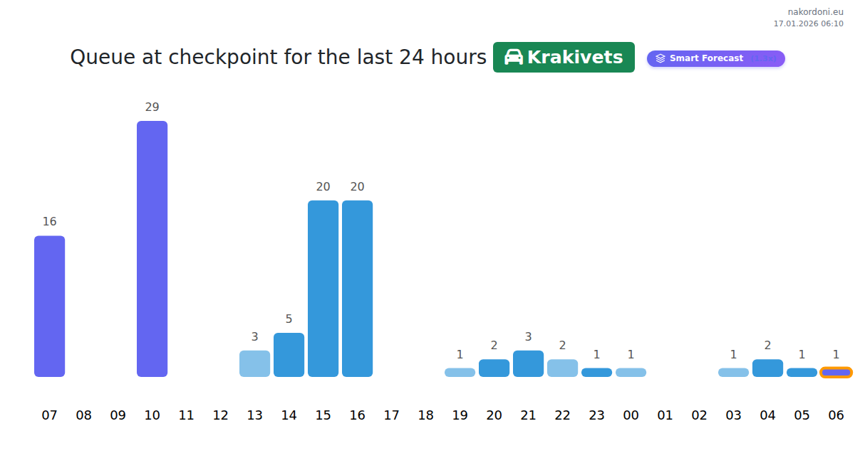 Plan your trips in advance using up-to-date border queue information at the Krakivets - passenger car checkpoint to make your crossing fast and convenient. Pay special attention to these hours to avoid peak times and reduce waiting times.