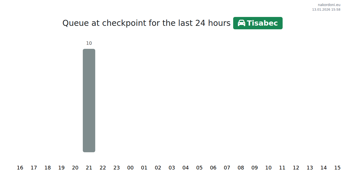 At Tisabec, passenger car wait times range from 15 to 135 minutes. Avoid peak congestion at 09:00, 12:00, and 14:00 for a faster crossing. The best times to travel are 23:00, 00:00, or 01:00 when queues are shortest.