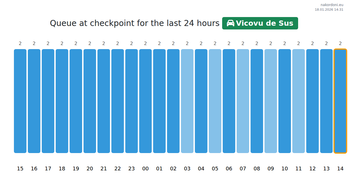 Plan your trips in advance using up-to-date border queue information at the Vicovu de Sus - passenger car checkpoint to make your crossing fast and convenient. Pay special attention to these hours to avoid peak times and reduce waiting times.