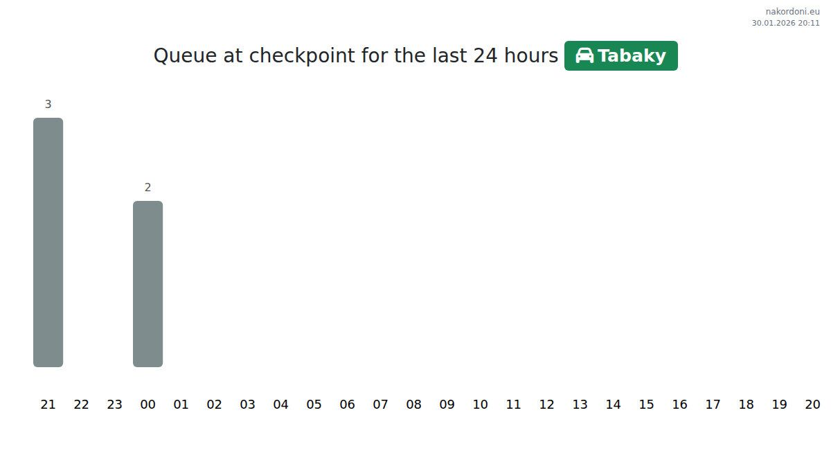 Border Queue Analysis at the Tabaky - passenger car checkpoint for Yesterday