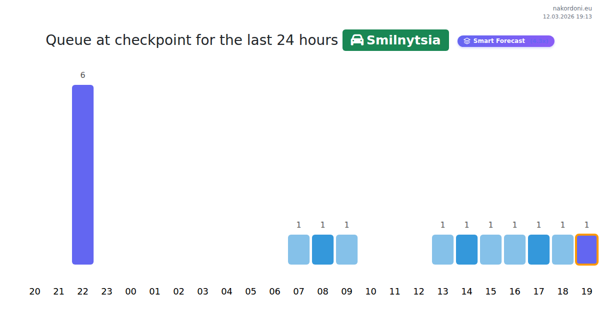 Plan your trips in advance using up-to-date border queue information at the Smilnytsia - passenger car checkpoint to make your crossing fast and convenient. Pay special attention to these hours to avoid peak times and reduce waiting times.