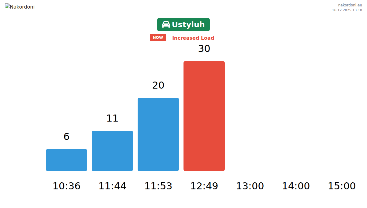 Plan your trips in advance using up-to-date border queue information at the Ustyluh - passenger car checkpoint to make your crossing fast and convenient. Pay special attention to these hours to avoid peak times and reduce waiting times.