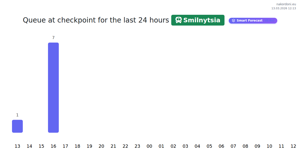 Plan your trips in advance using up-to-date border queue information at the Smilnytsia - bus checkpoint to make your crossing fast and convenient. Pay special attention to these hours to avoid peak times and reduce waiting times.