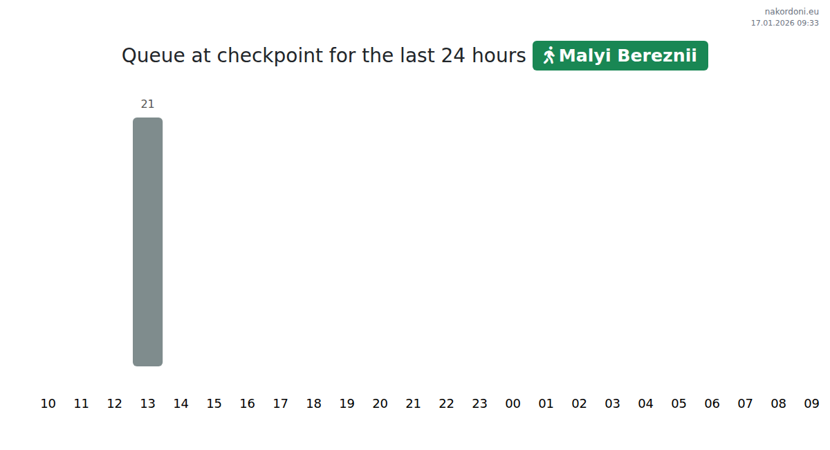Plan your trips in advance using up-to-date border queue information at the Malyi Bereznii - pedestrian checkpoint to make your crossing fast and convenient. Pay special attention to these hours to avoid peak times and reduce waiting times.