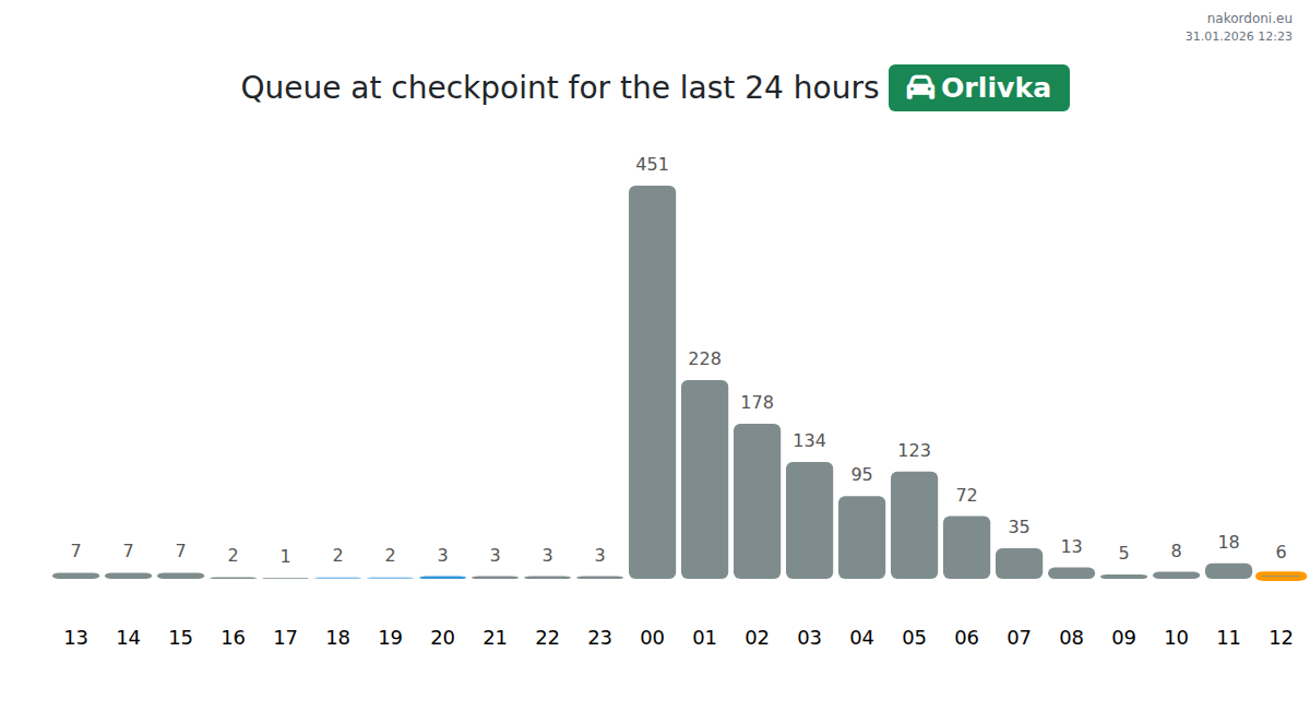 Plan your trips in advance using up-to-date border queue information at the Orlivka - car checkpoint to make your crossing fast and convenient. Pay special attention to these hours to avoid peak times and reduce waiting times.