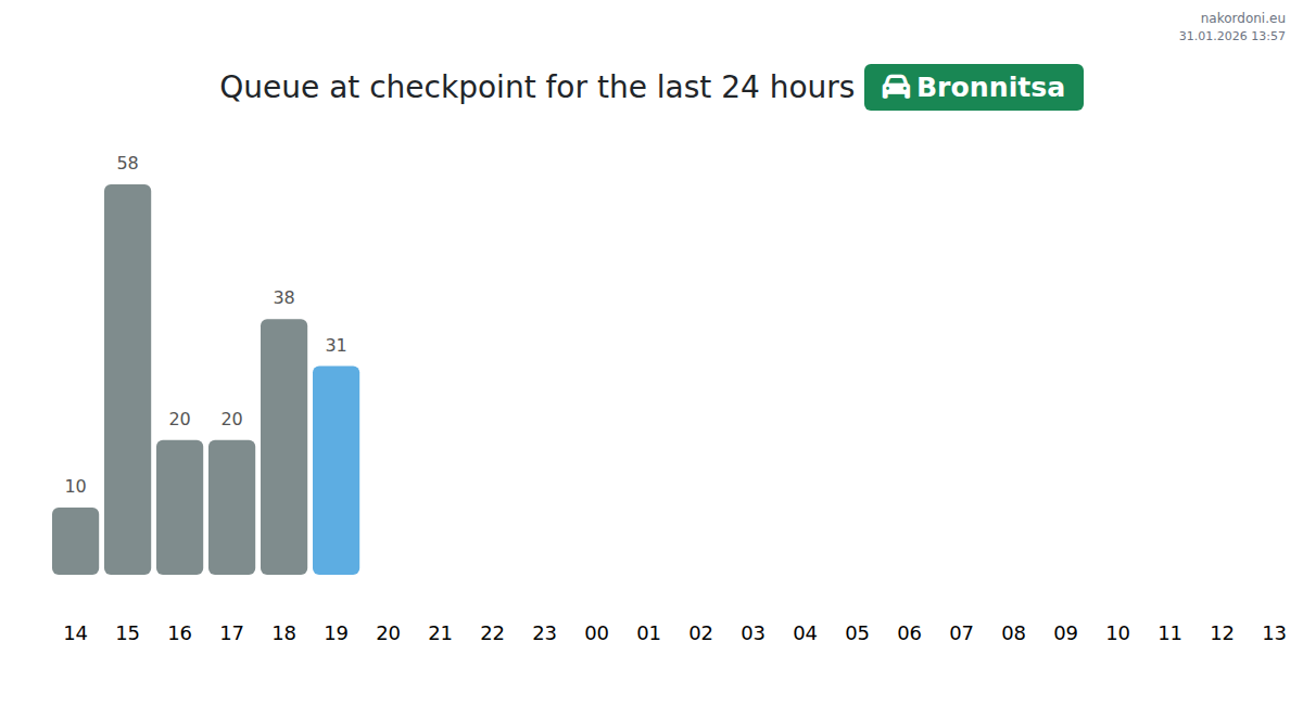 Border Queue Analysis at the Bronnitsa - passenger car checkpoint for Yesterday