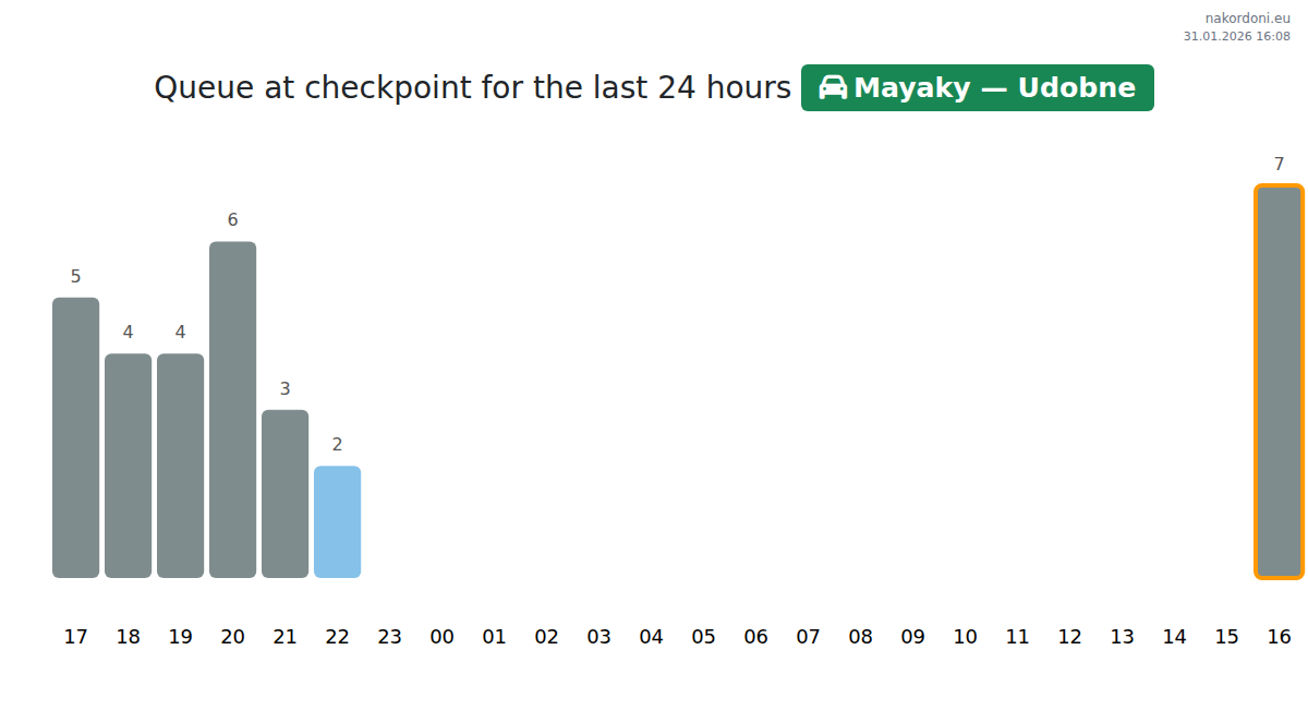 How long is the wait in the border queue at Mayaky — Udobne?