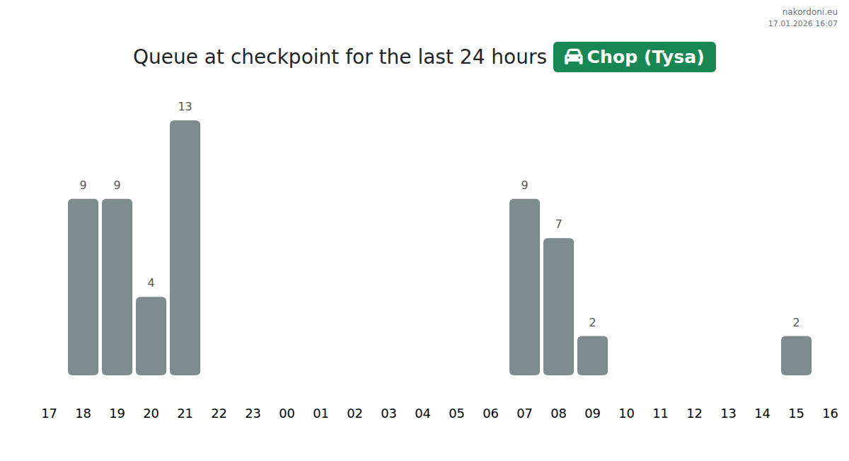 Border Queue Analysis at the Chop (Tysa) - passenger car checkpoint for Yesterday