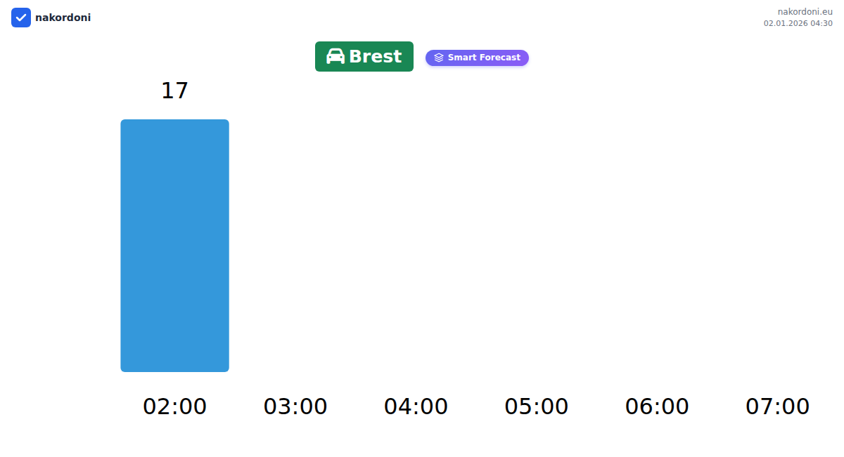 Plan your trips in advance using up-to-date border queue information at the Brest - passenger car checkpoint to make your crossing fast and convenient. Pay special attention to these hours to avoid peak times and reduce waiting times.