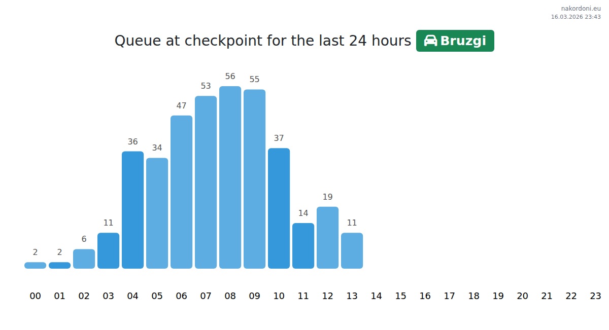 Plan your trips in advance using up-to-date border queue information at the Bruzgi - passenger car checkpoint to make your crossing fast and convenient. Pay special attention to these hours to avoid peak times and reduce waiting times.