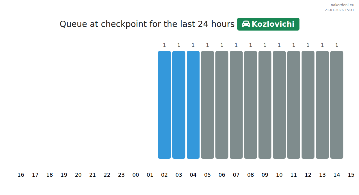 Plan your trips in advance using up-to-date border queue information at the Kozlovichi - passenger car checkpoint to make your crossing fast and convenient. Pay special attention to these hours to avoid peak times and reduce waiting times.