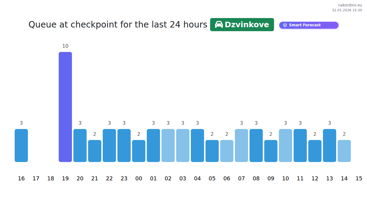 Plan your trips in advance using up-to-date border queue information at the Dzvinkove - passenger car checkpoint to make your crossing fast and convenient. Pay special attention to these hours to avoid peak times and reduce waiting times.
