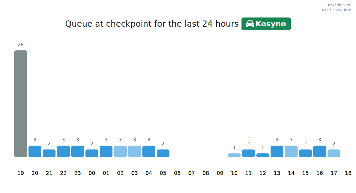 To avoid long queues at the Kosyno - passenger car checkpoint, it is recommended to plan your border crossing during the least busy hours. According to the data from the past day, the lowest number of vehicles was observed between 5:00 and 18:00 hours. This is the ideal time to cross the border, saving time and avoiding delays.