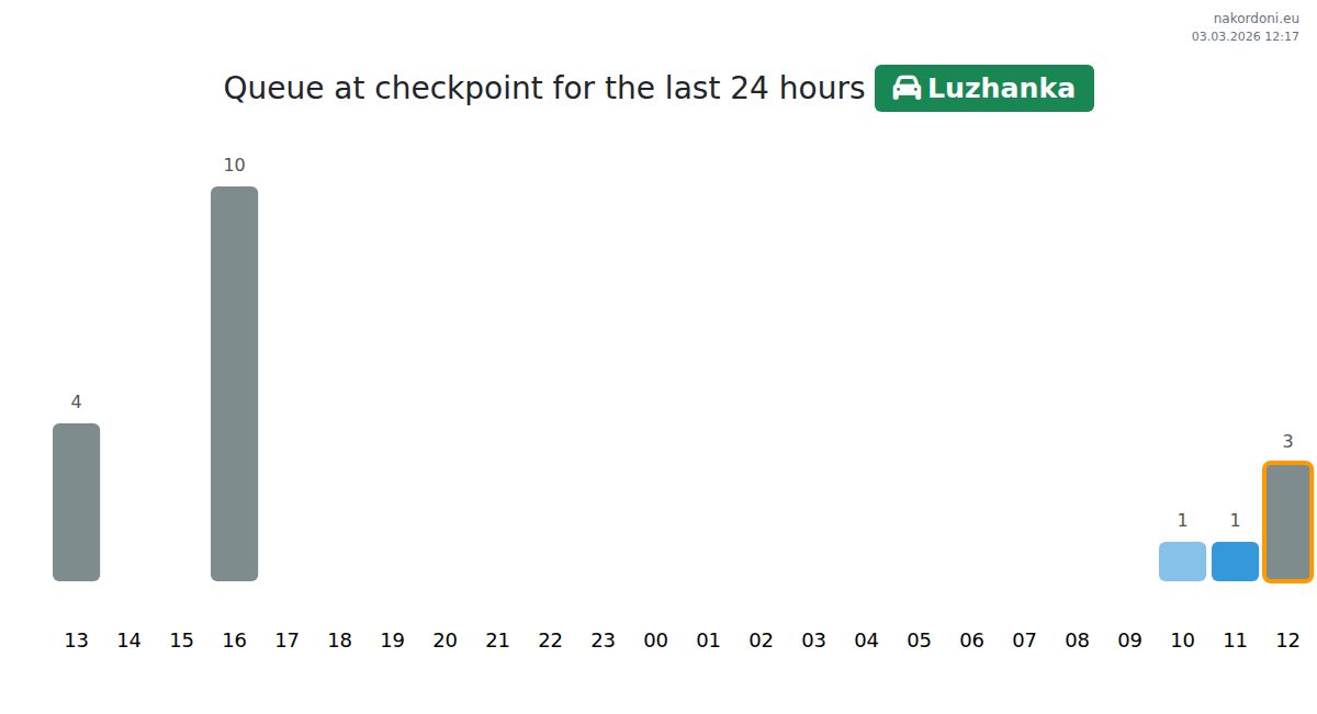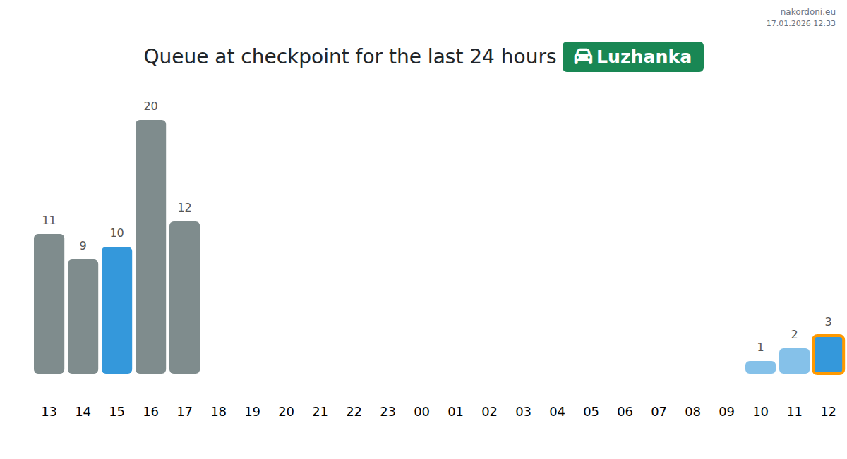 Plan your trips in advance using up-to-date border queue information at the Luzhanka - passenger car checkpoint to make your crossing fast and convenient. Pay special attention to these hours to avoid peak times and reduce waiting times.