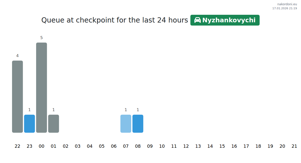 Plan your trips in advance using up-to-date border queue information at the Nyzhankovychi - passenger car checkpoint to make your crossing fast and convenient. Pay special attention to these hours to avoid peak times and reduce waiting times.