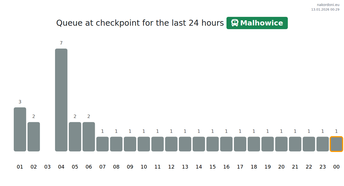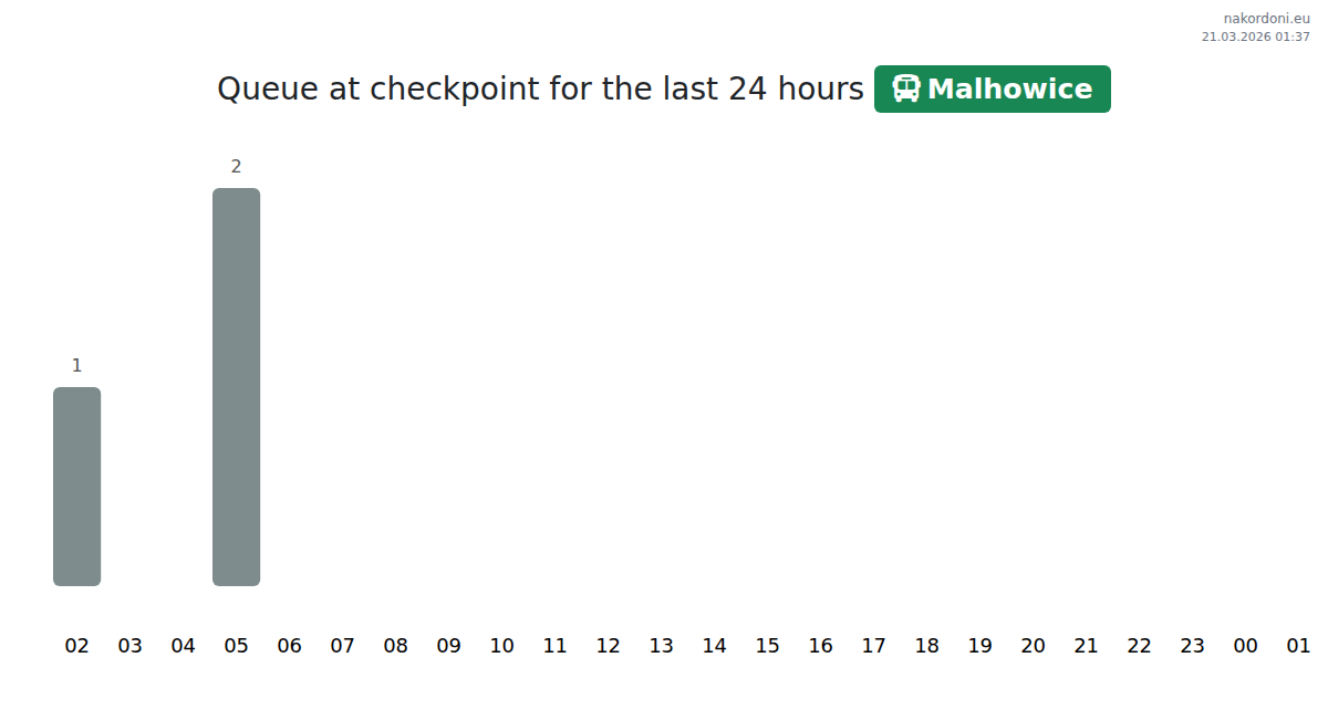 To avoid long queues at the Malhowice - bus checkpoint, it is recommended to plan your border crossing during the least busy hours. According to the data from the past day, the lowest number of vehicles was observed between 1:00 and 3:00 hours. This is the ideal time to cross the border, saving time and avoiding delays.