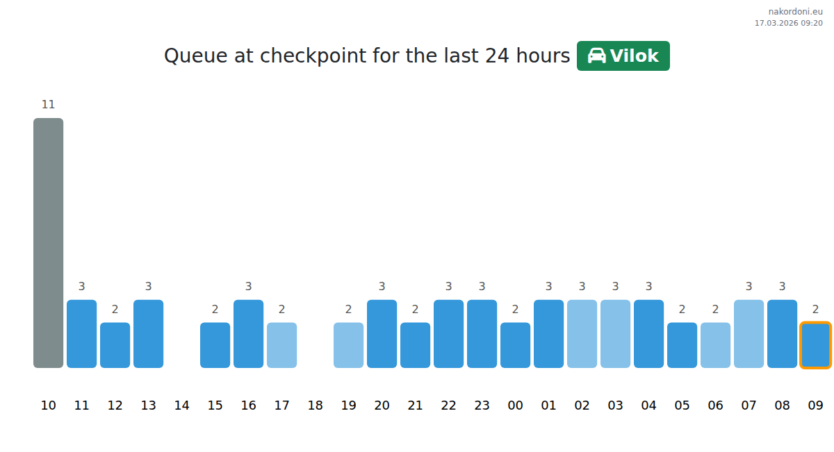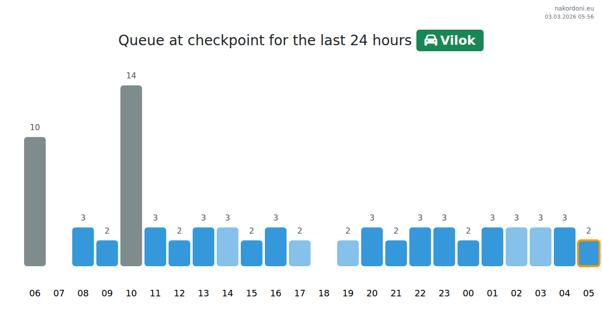 Plan your trips in advance using up-to-date border queue information at the Vilok - passenger car checkpoint to make your crossing fast and convenient. Pay special attention to these hours to avoid peak times and reduce waiting times.