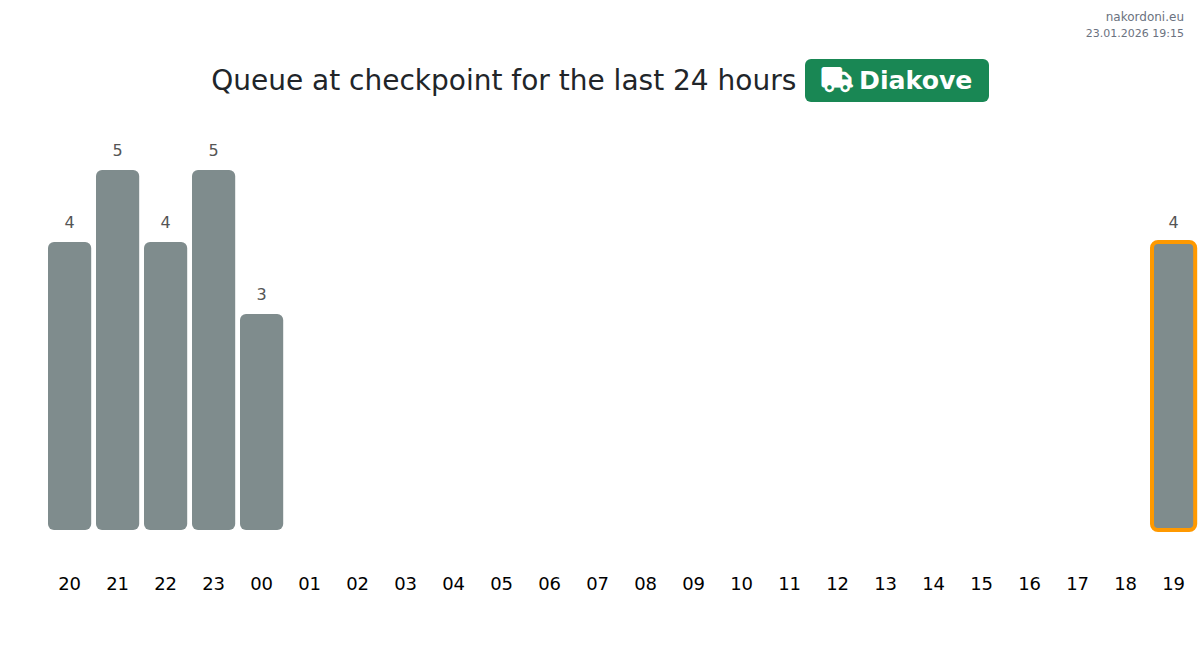 Plan your trips in advance using up-to-date border queue information at the Diakove - cargo transport checkpoint to make your crossing fast and convenient. Pay special attention to these hours to avoid peak times and reduce waiting times.